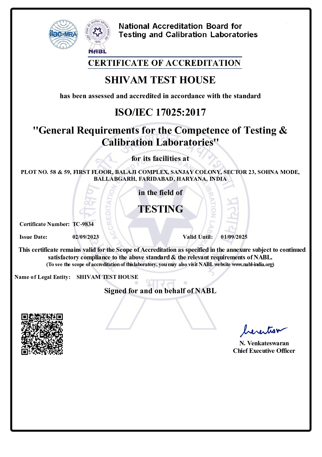 Shivam Test House LLP is accredited by National Accreditation board for testing & calibration laboratories ISO/IES/17025 by AZLA for chemical, mech., building material & NDT services. Shivam Test House LLP also approved by (ISO 9001:2015) & (ISO 14001:2015).